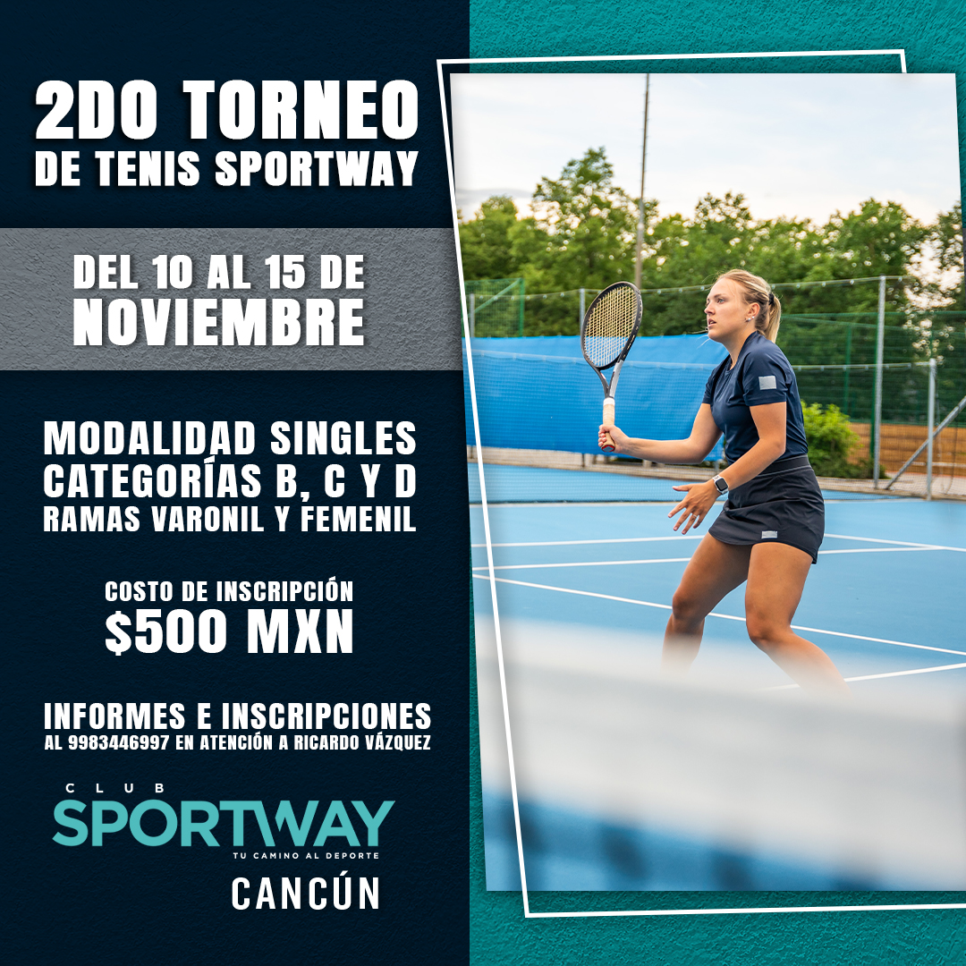Del 10 al 15 de noviembre, llega el 2do Torneo de Tenis Sportway, una oportunidad para demostrar tu habilidad y competir en un ambiente emocionante y lleno de energía deportiva.