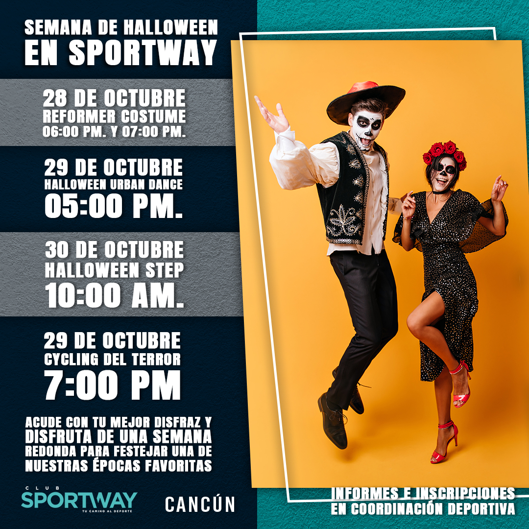 Acude con tu mejor disfraz y disfruta de una semana redonda, perfecta para celebrar una de nuestras épocas favoritas mientras te mantienes activo y conectado con la comunidad Sportway.